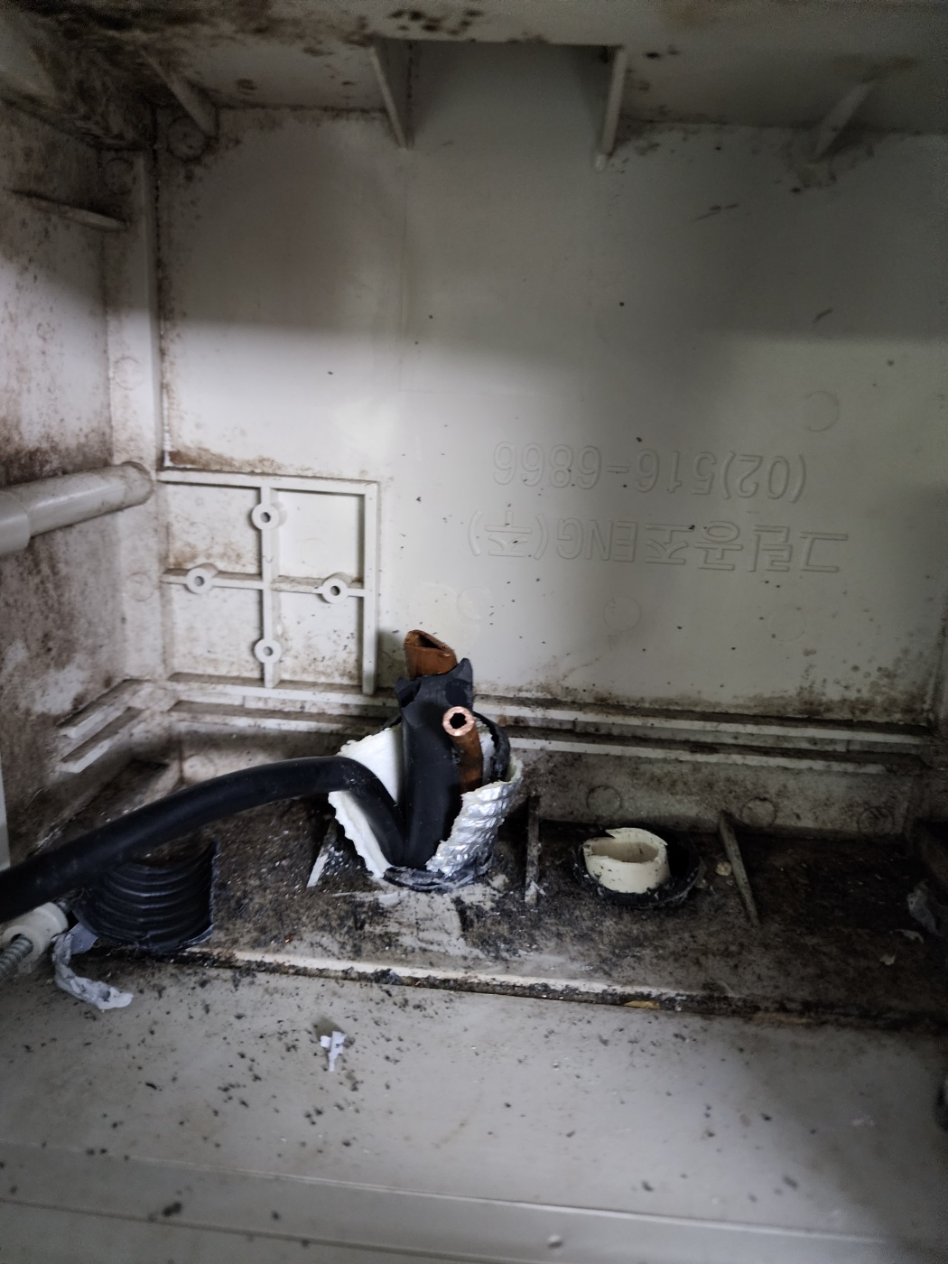 에어컨 배수관 누수 수리 비용이 너무 저렴하다는 말에 현혹되어 장비도 없는 일반 설비 업체를 부르는 것은 위험합니다.