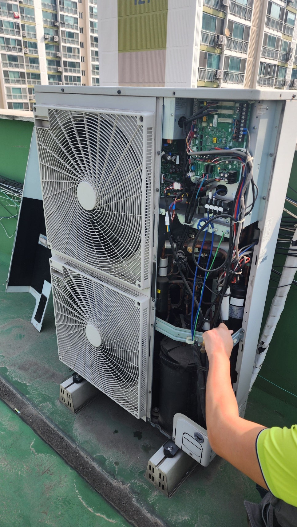 실외기 주변을 깨끗이 유지하고, 실외기실 환기창을 항상 열어두세요 . 실외기 주변에 물건을 쌓아두면 열배출이 원활하지 않아 성능 저하와 고장의 원인이 됩니다.