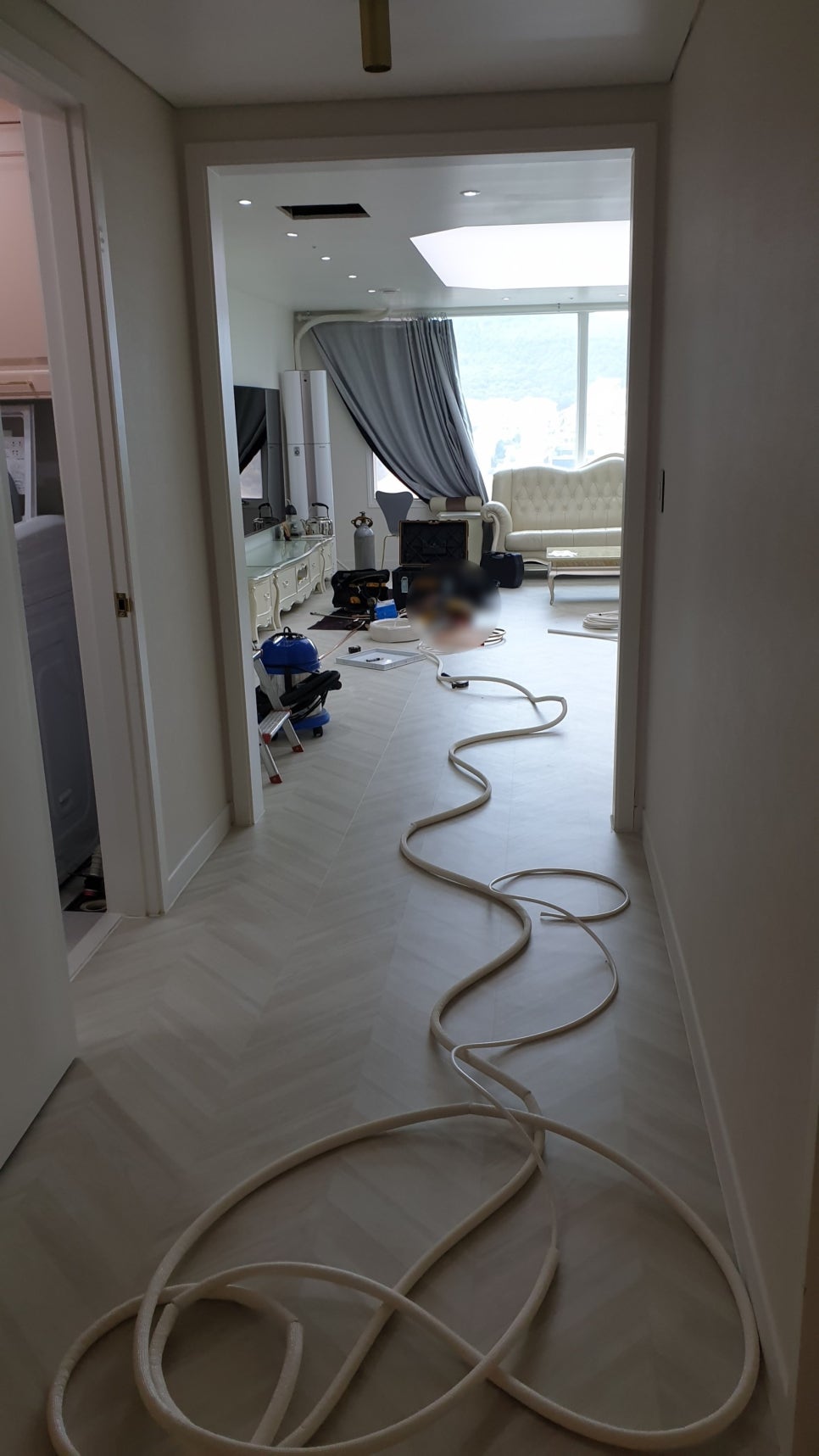 뚝딱솔루션은 먼저 정확한 원인을 찾기 위해 체계적인 진단을 실시합니다. 천장형 시스템 에어컨은 천장 내부가 비좁고 여유공간이 없어 내시경이나 전문장비를 투입하기에도 매우 제한되는 경우가 많습니다. 아무리 경험이 많은 기술자라도 정밀 장비 없이는 매립된 호수의 문제점을 정확히 알 수 없습니다.