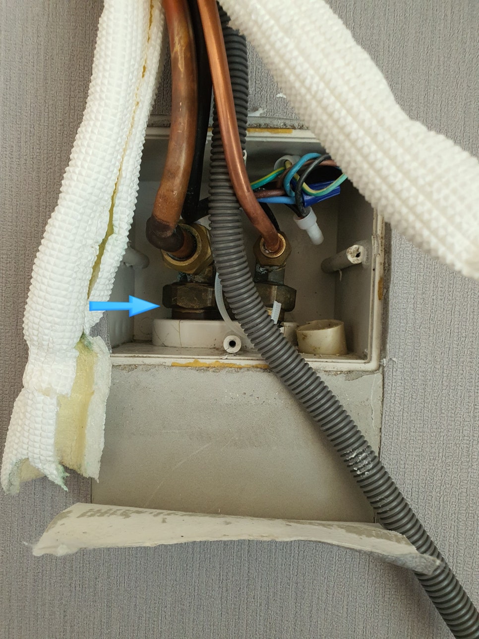 용인 봇들마을 현장에서는 계속된 드레인호스 물 넘침 역류 현상으로 인해 방쪽 에어컨을 아예 사용을 못 하고 계셨는데, 원인을 제거해 드렸습니다. 드레인 매설 작업 중 혹은 매설 작업 중 돌멩이가 들어가서 물구멍을 막고 있는 현장이었는데, 집에는 아무런 손상 없이 문제의 돌멩이 돌가루를 제거했습니다. 수리도 20분 만에 끝냈습니다 .