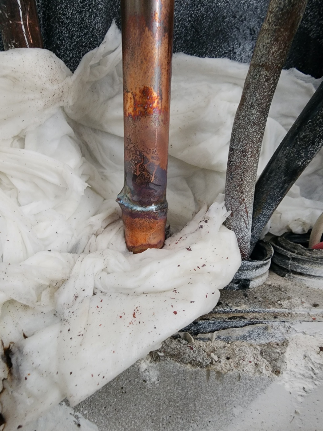 콘크리트 속에 매립된 배관은 습기나 화학 반응에 노출될 수 있습니다. 특히 배관을 감싸는 보온재 시공이 불량할 경우, 미세한 수분이 침투하여 동관에 바늘구멍 같은 '핀홀'을 만듭니다. 여기서 가스가 아주 조금씩 빠져나가기 때문에 발견이 매우 어렵습니다.