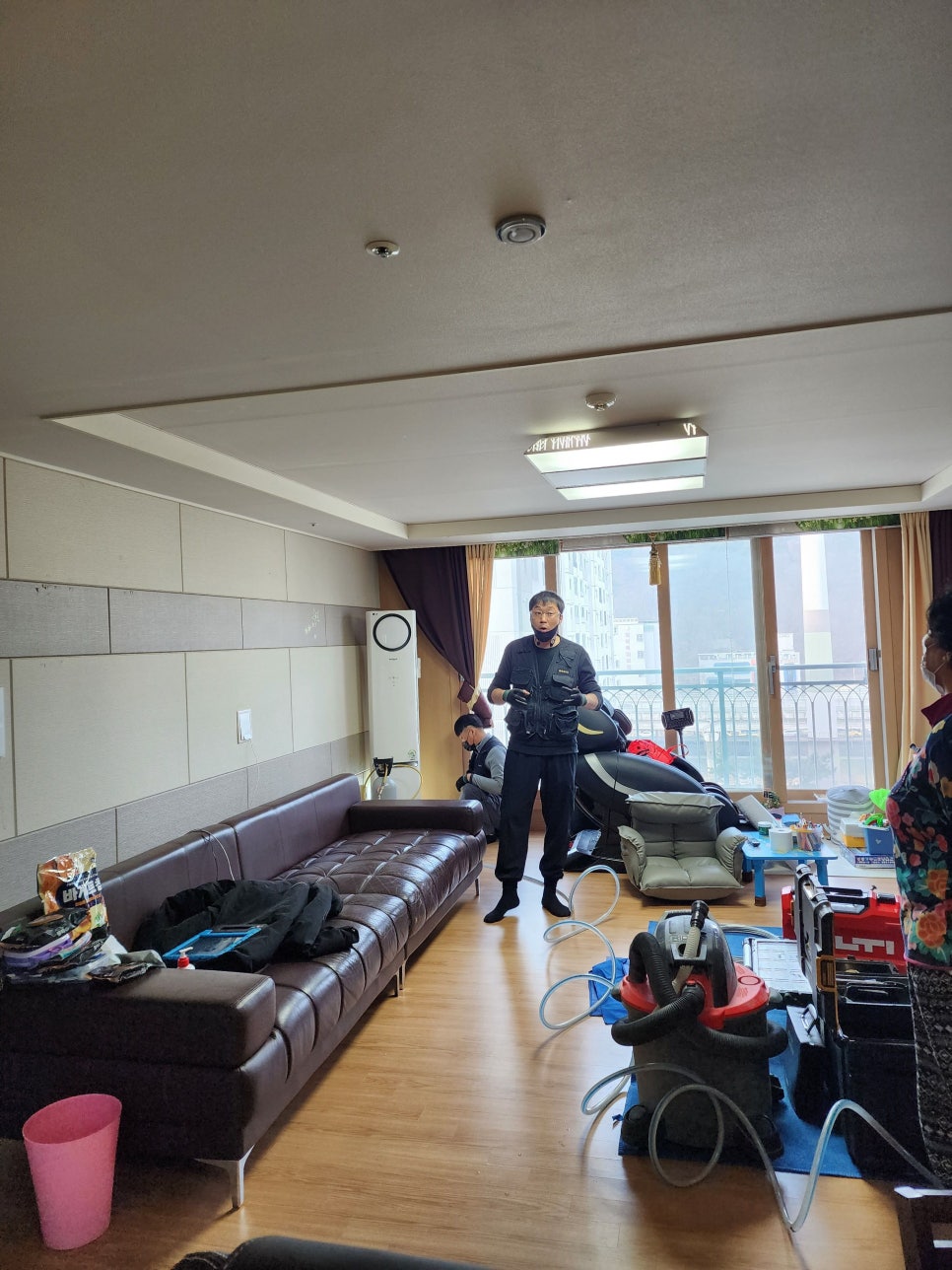 인테리어 공사나 리모델링 후에는 배수 호스가 건드려졌을 가능성이 있습니다. 공사 후 드레인 검사를 받아보는 것이 좋습니다.