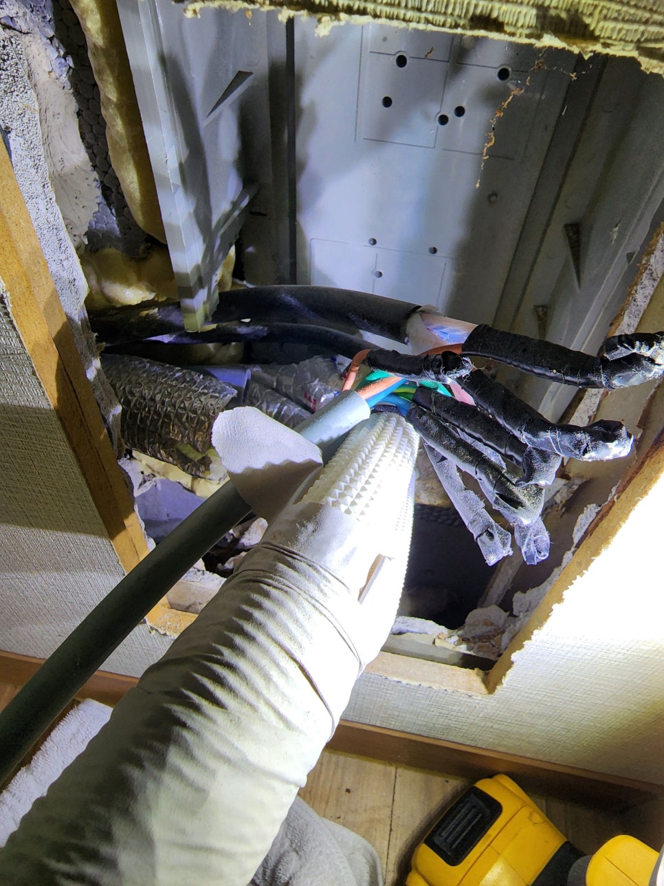 비파괴 검사로 천장을 최소한으로 개방하고 정확한 문제 부위 파악