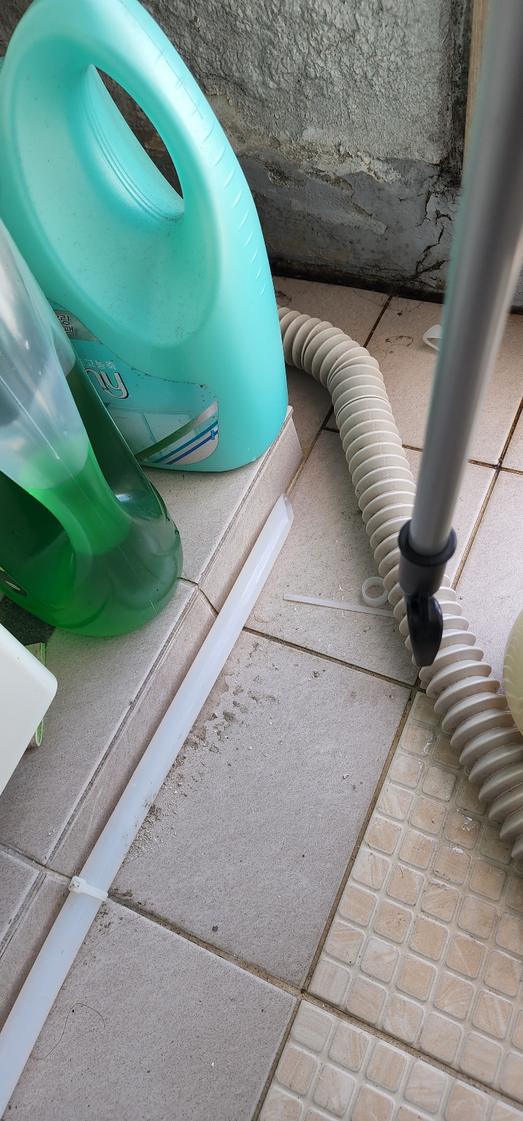 하수구파워 전용 통수기로 작업한 사례를 보면, 베란다 우수관까지 스프링이 뚫고 나오면서 물코가 많이 묻어 나온 것을 확인할 수 있습니다.