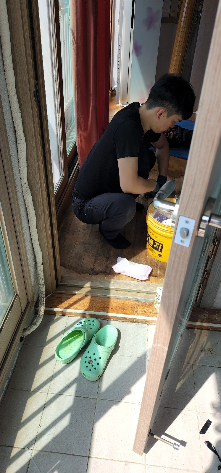 "베란다 배수구로 물이 안 빠지고 거실 바닥이 물에 잠겼어요..."