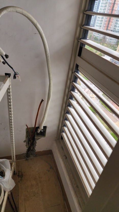 실외기 진동에 의한 지속적인 마찰 손상: 실외기가 세차게 돌아갈 때 발생하는 미세한 진동이 배관에 계속해서 스트레스를 줍니다. 만약 배관이 실외기 철판 케이스나 베란다 난간 등 주변 구조물과 맞닿아 있다면, 오랜 시간 동안 진동으로 인해 마찰이 일어나면서 그 부위가 닳고 닳아 결국 구멍이 나버립니다.