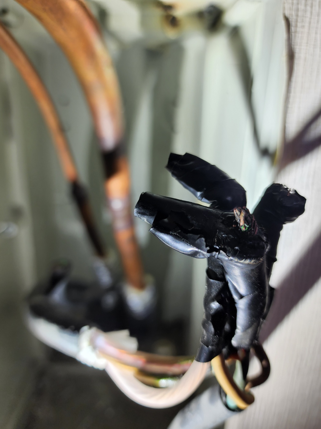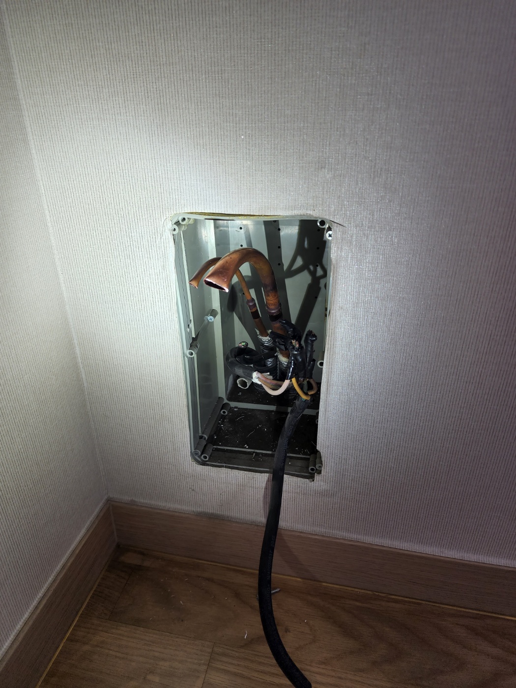 매립배관에 설치된 기구(분배기)를 제거한 후 마감을 잘못하면 누설이 발생할 수 있습니다. 특히 고압관과 저압관의 보온재 마감이 제대로 되지 않으면 온도차로 인해 결로가 생기고 전선에 누전 위험이 발생할 수도 있습니다 .