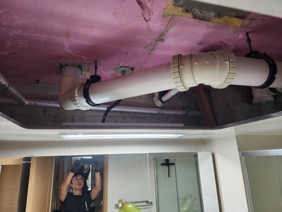 인테리어 공사 중 타공 사고나 노후화된 PVC 배관의 크랙으로 인해 물이 직접 새어 나오는 경우입니다. 이는 반드시 내시경으로만 확인 가능한 고난도 문제입니다.