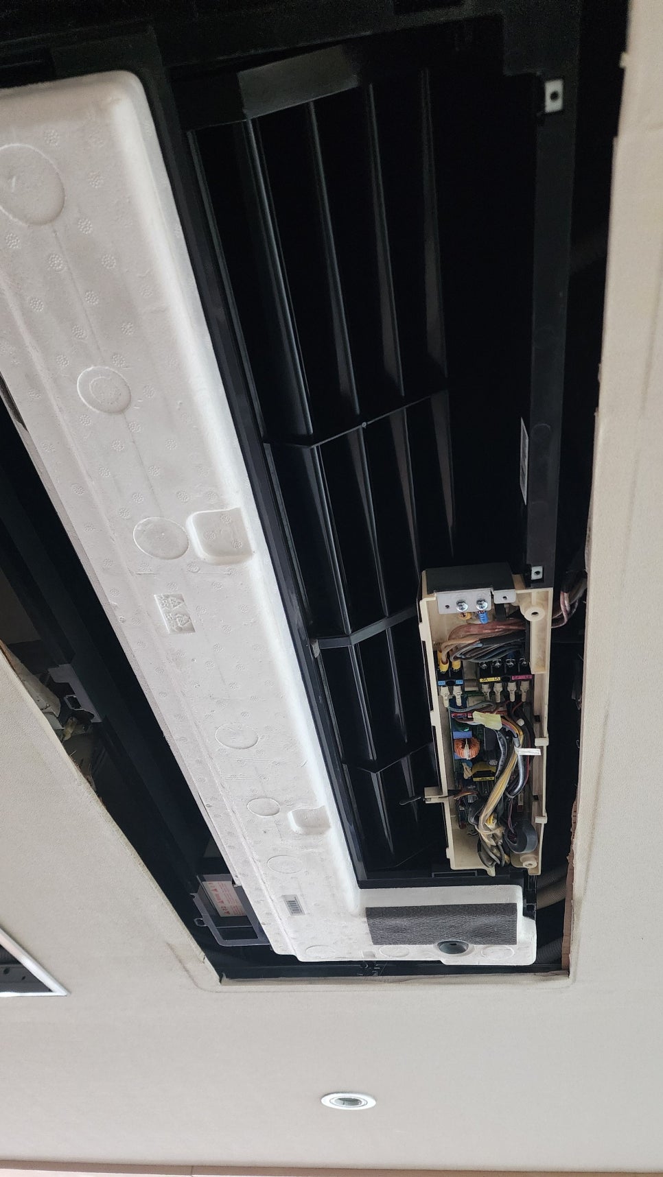 일반 벽걸이 에어컨은 중력을 이용해 물을 아래로 흘려보내지만, 천장에 매립된 시스템에어컨은 물을 강제로 위로 끌어올려 배출해야 합니다. 이때 핵심적인 역할을 하는 부품이 바로 배수 펌프입니다. 이 펌프에 이물질이 끼거나, 모터가 노후화되어 제 기능을 상실하면 물이 배출되지 못하고 기기 내부에 고이게 됩니다. 삼성 에어컨의 경우 펌프 이상 시 특정 에러 코드를 띄우기도 하지만, 간혹 알림 없이 조용히 누수가 진행되는 경우도 많습니다.