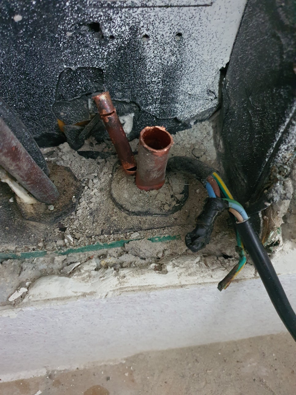 저렴한 재생 플라스틱 호스는 1년만 지나도 또다시 삭아버립니다. 뚝딱솔루션은 내구성이 완벽하게 입증된 각 제조사 100% 정품 규격의 최고급 호스와 두꺼운 KS 인증 PVC 배관만을 고집합니다. 절단한 빈 공간에 정확히 들어맞도록 새 배관을 정밀하게 재단한 후, 누수 방지 전용 특수 본드와 이탈 방지용 풀림 방지 클램프를 사용하여 에어컨 펌프의 강한 수압에도 절대 빠지지 않도록 완벽하게 한 몸으로 체결합니다.