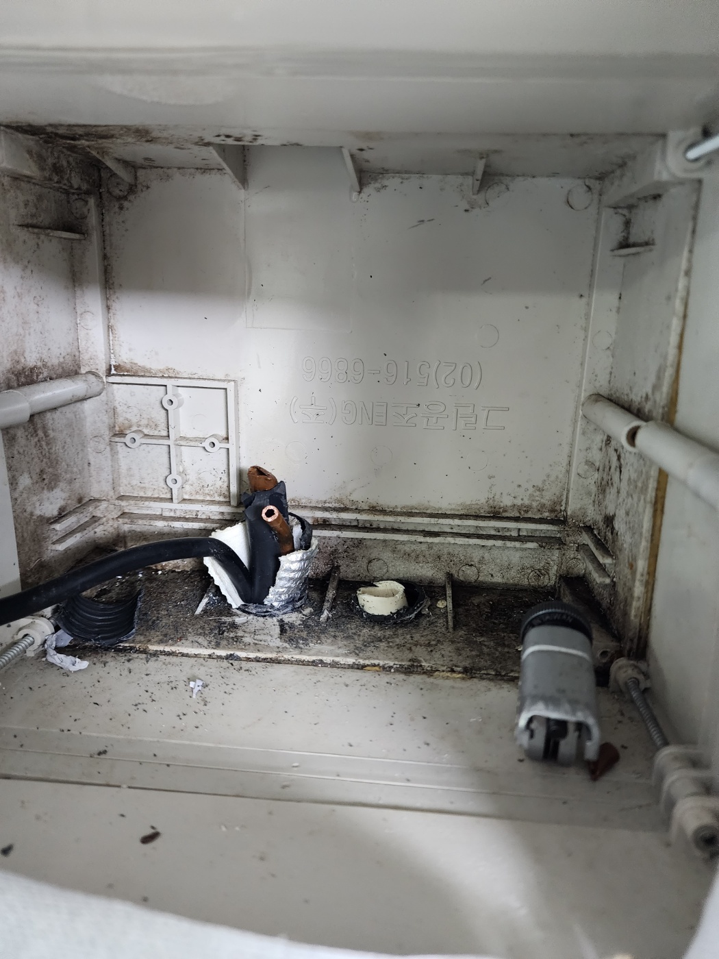 에어컨 배수관 누수 수리 비용이 너무 저렴하다는 말에 현혹되어 장비도 없는 일반 설비 업체를 부르는 것은 위험합니다.