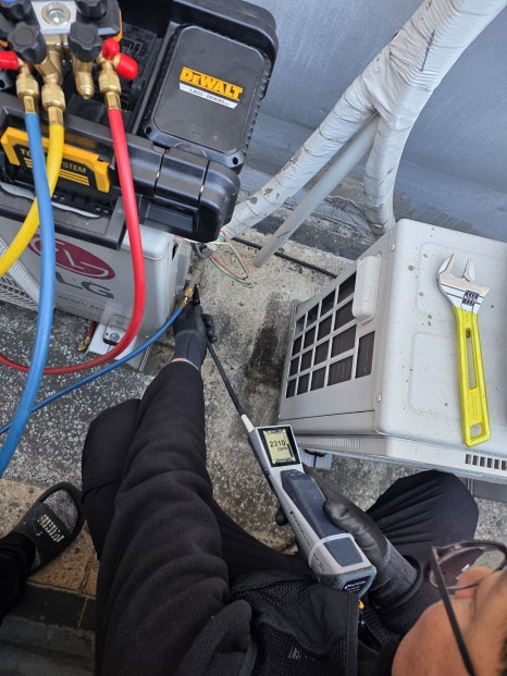 | 형광액 주입 | 냉매에 형광 물질을 혼합하여 UV 라이트로 누출 부위 확인 | 미세한 균열도 시각적으로 확인 가능 |